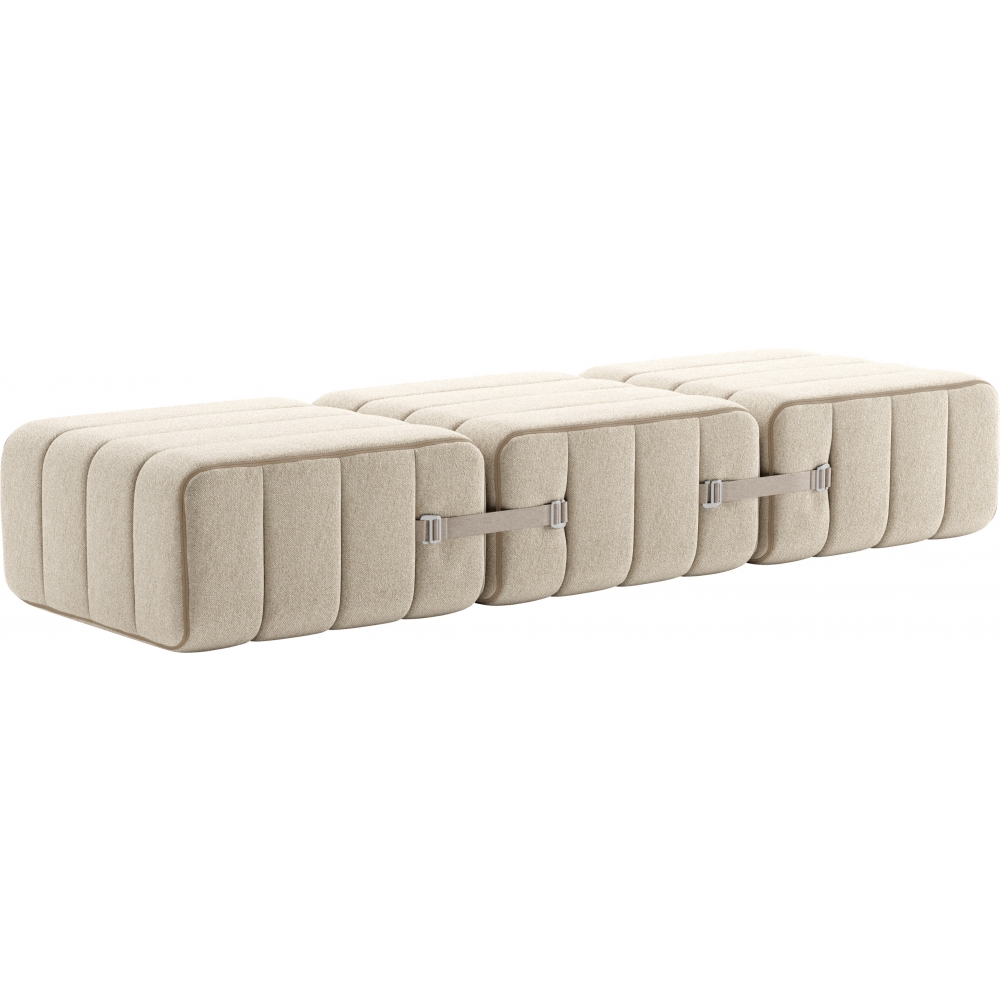 Aller guten Dinge! Drei Curt Module reichen schon für die eine oder andere Spielerei. Ein kleiner asymmetrischer Sessel, eine Bank, eine Liege, ein Gästebett oder drei einzelne Hocker. Mit dreierlei Modulen wird aus Curt zwar noch kein Sofasystem, aber Modular und Flexibel ist es allemal.Im Inneren eines jeden Curt Moduls findet sich nicht nur ein stabiler mit Polstergurten bespannter Sperrholzrahmen, sondern auch eine aus drei unterschiedlichen Schichten bestehende Kaltschaumpolsterung. Contract: Alle Materialien können auf Wunsch für den Einsatz in Hotels oder öffentlichen Gebäuden ausgerüstet werden.