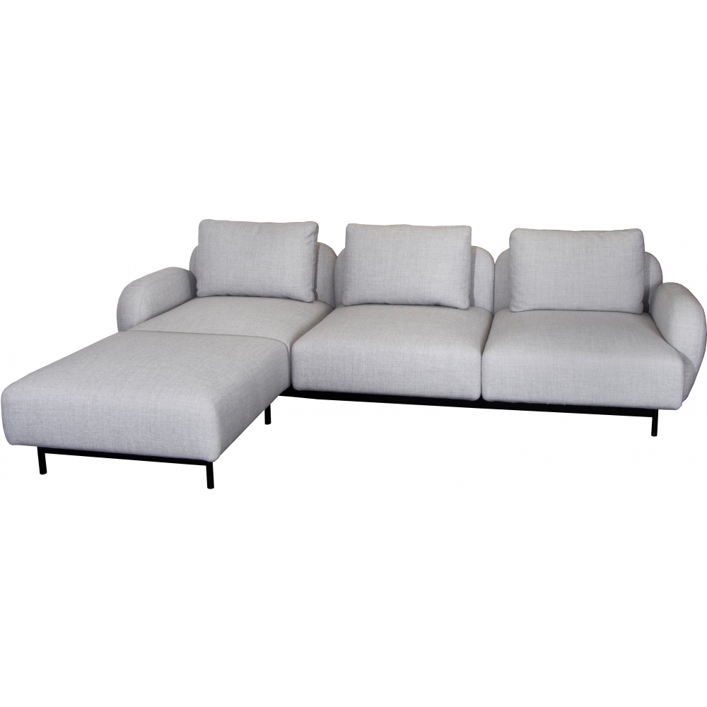 Cane-line - Aura Sofa 3-Sitzer mit niedrigen Armlehnen & Chaise Longue rechts Hellgrau (Essence)