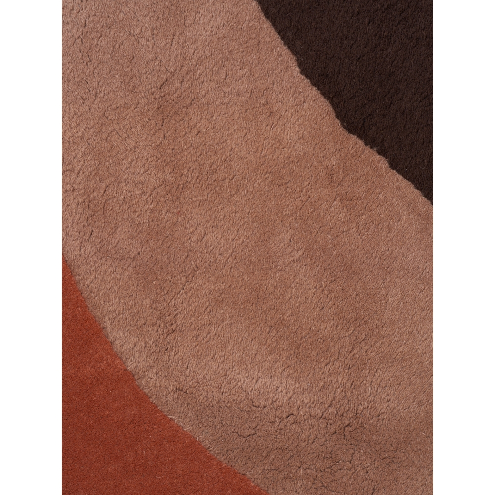 Dieser exklusive getuftete Teppich mit seinen geometrischen Formen, die an sanfte Wüstendünen und schroffe Bergketten erinnern, ist von einer Luftaufnahme der Erde inspiriert. Er wird von Hand mit der traditionellen Technik des Teppichhäkelns gefertigt. Die Teppiche werden aus äußerst weicher, aber dennoch strapazierfähiger Wolle aus Neuseeland hergestellt und in den künstlerischen Ausführungen in beruhigenden Beigetönen oder kräftigen, erdigen Rotbrauntönen angeboten. Den vielseitigen Stücken wird durch kontrastierende Reliefs Tiefe und Dimension verliehen. Die Fransen an den Enden unterstreichen das kunsthandwerkliche Flair.