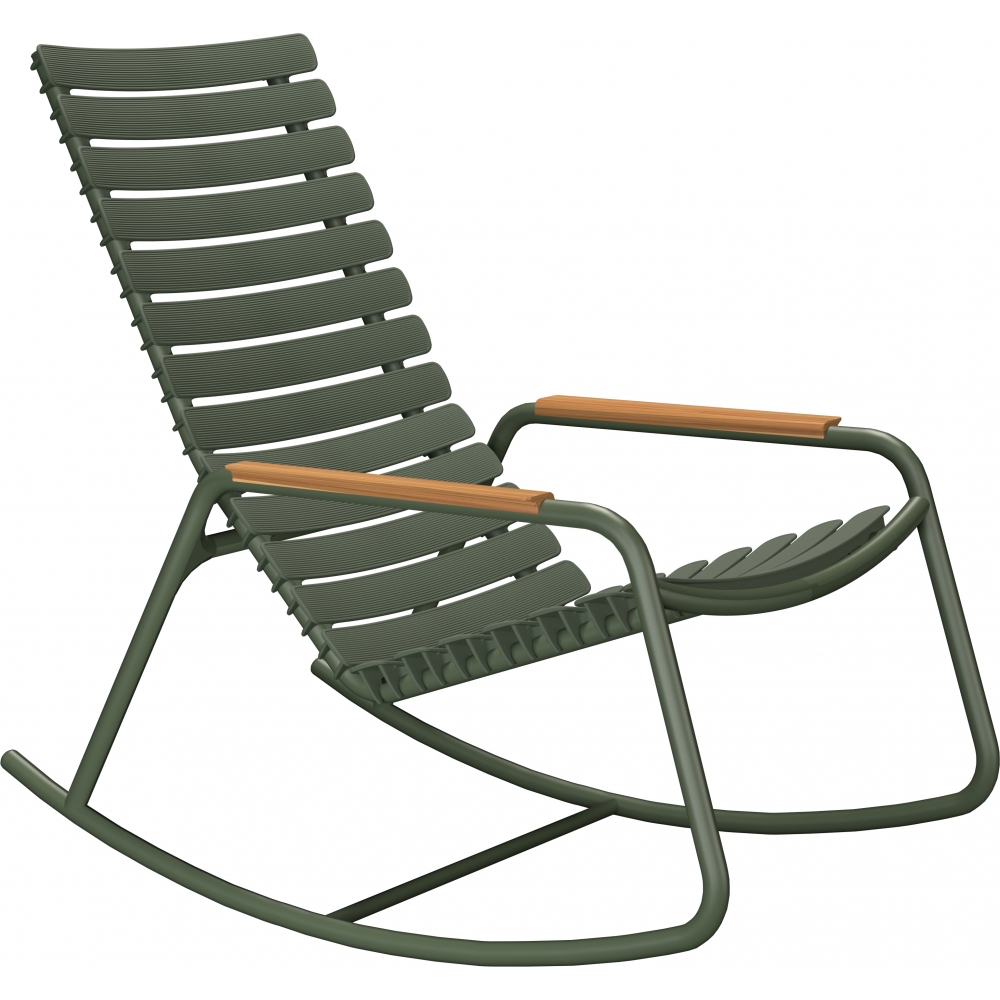 ReCLIPS Schaukelstuhl mit Aluminium Armlehne. ReCLIPS Schaukelstuhl ist in 4 einfarbigen Farben erhältlich. ReCLIPS ist Teil von HOUE MyTrash. Es handelt sich um eine Kollektion von Outdoor-Stühlen mit breiten Lamellen, die zu 97% aus dänischem Haushaltsmüll bestehen und in Dänemark hergestellt werden. Bei ReCLIPS handelt es sich im Grunde um das Ergebnis einer Mischung aus dänischem Design und dänischer Innovation - und der Umsetzung dieser neuen Denkweise und Materialien in einen Stuhl. Der Aluminiumrahmen und die UV-geschützten Kunststofflamellen reduzieren den Pflegeaufwand auf ein Minimum.