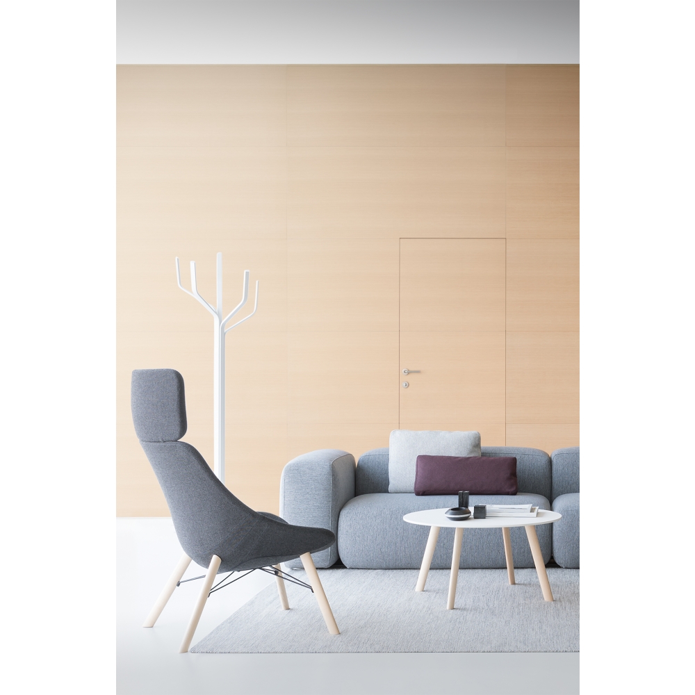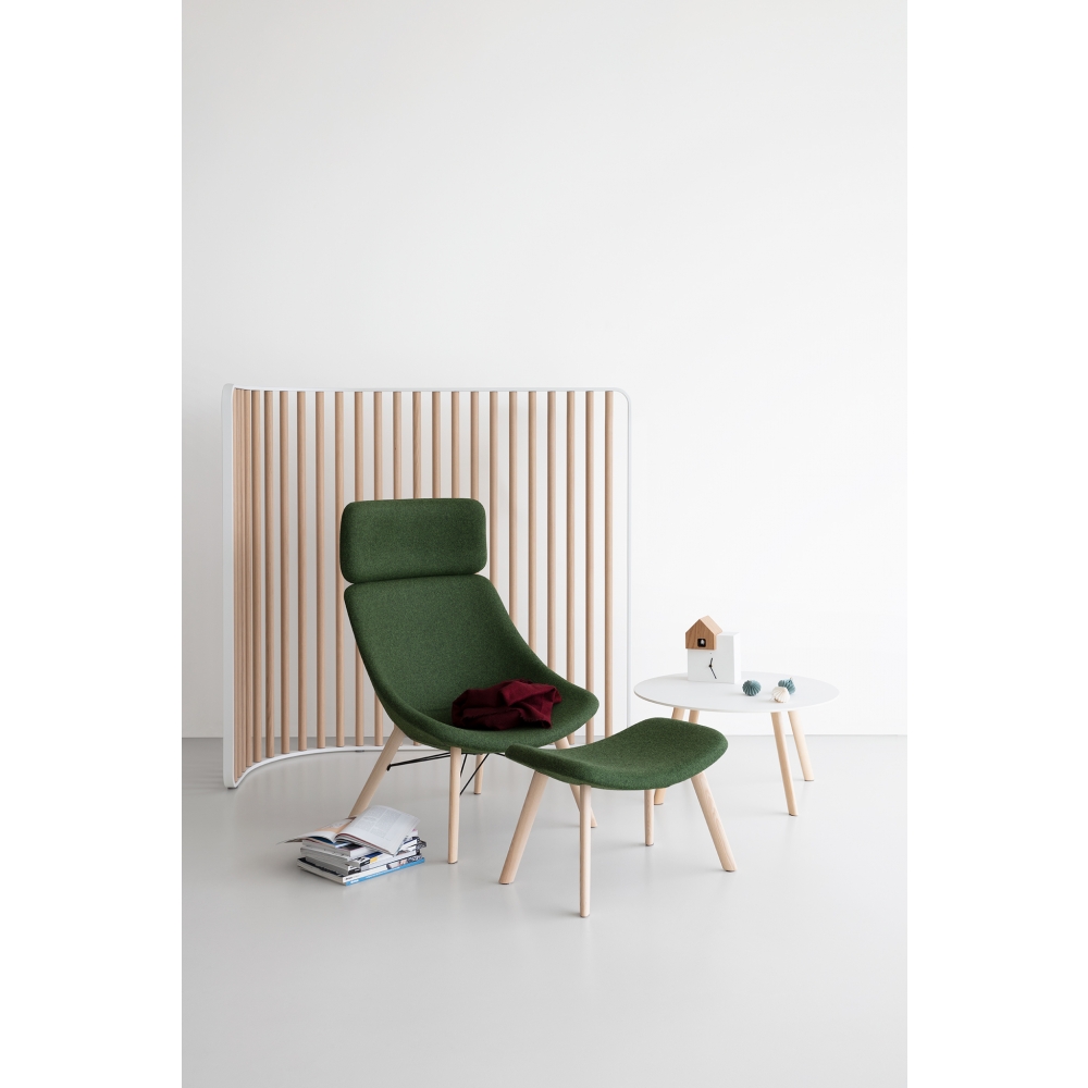 Eine elegant geschwungene Fläche, die den Körper stützt, ist die Idee hinter diesem Sessel mit den klaren, sauberen Linien. Die leichte Rundung des Sitzes erzeugt eine kleine Armlehne. Das Basismodell AUKI kann mit einer Kopfstütze oder einer Fußstütze ausgestattet werden und so wird daraus beinahe eine komfortable Chaiselongue. Die „Familie“ AUKI differenziert sich durch verschiedene Gestellformen. Zwei Tischchen (rund oder quadratisch mit Platte aus HPL Fenix® oder Holz) ergänzen das Programm und so eignet sich AUKI hervorragend für Loungebereiche.