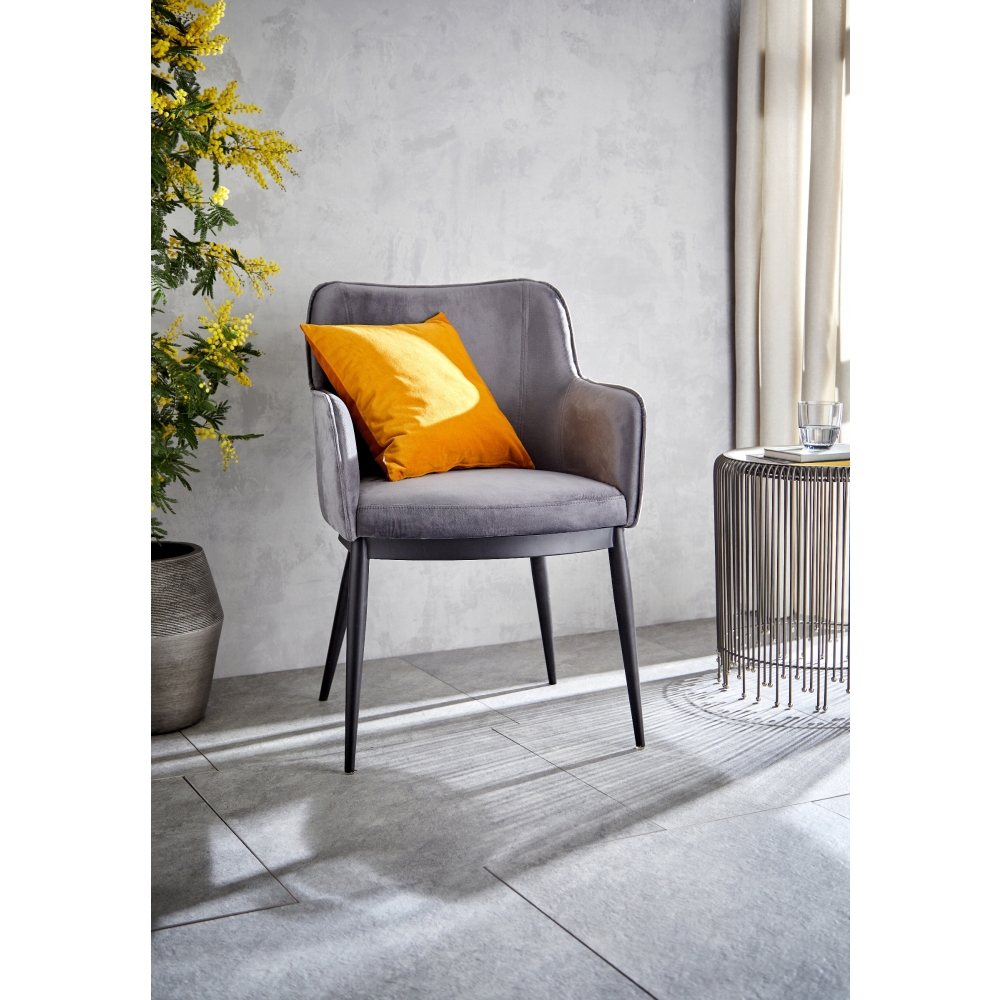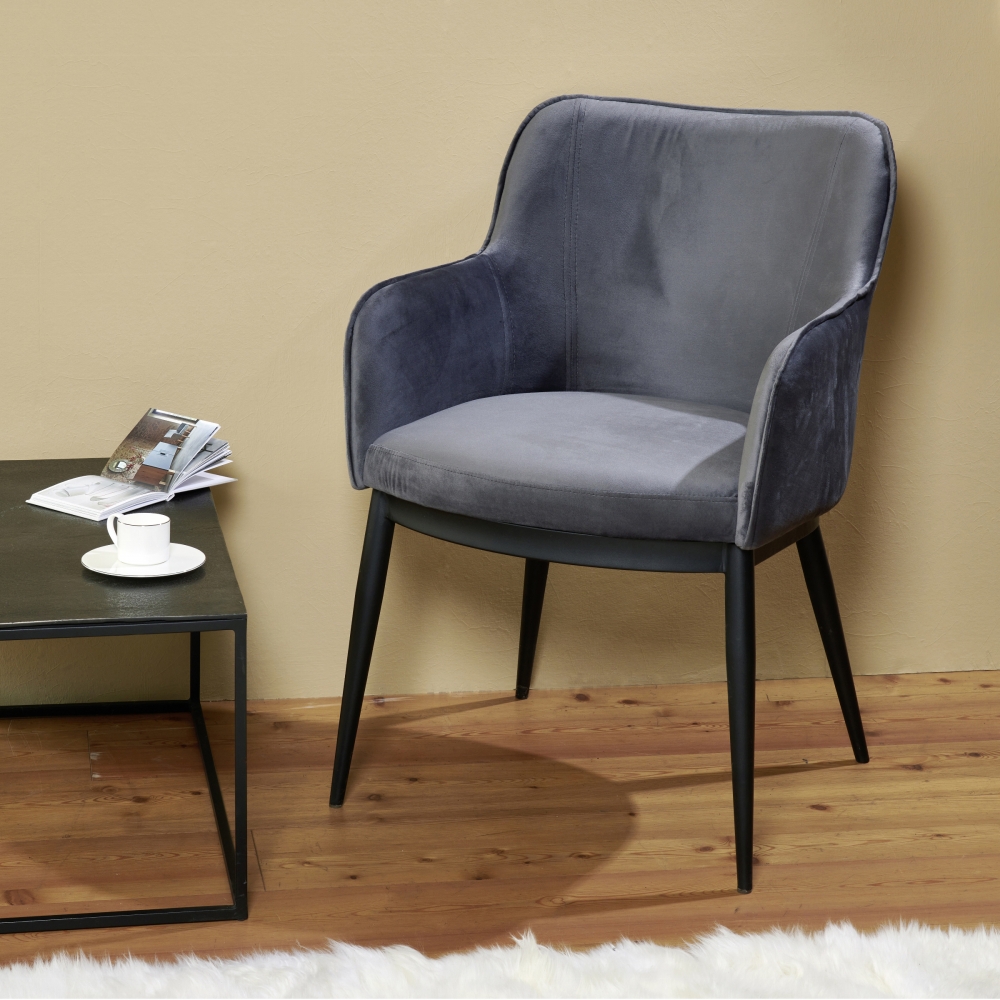 Felix ist ein sehr bequemer Armlehnstuhl. Die Sitzschale ruht auf einem stabilen Untergestell aus Stahl. Die fein texturierte, mattschwarze Pulverbeschichtung macht den Stuhl robust und vielseitig einsetzbar. Der umpolsterte Schaumstoff kann aufgrund der speziellen Form der Sitzschale nur mit ausgesuchten Stoffen bezogen werden. Lambert bietet FELIX in exklusiven Samtstoffen und in 5 trendigen und doch zeitlos eleganten Farben an.
