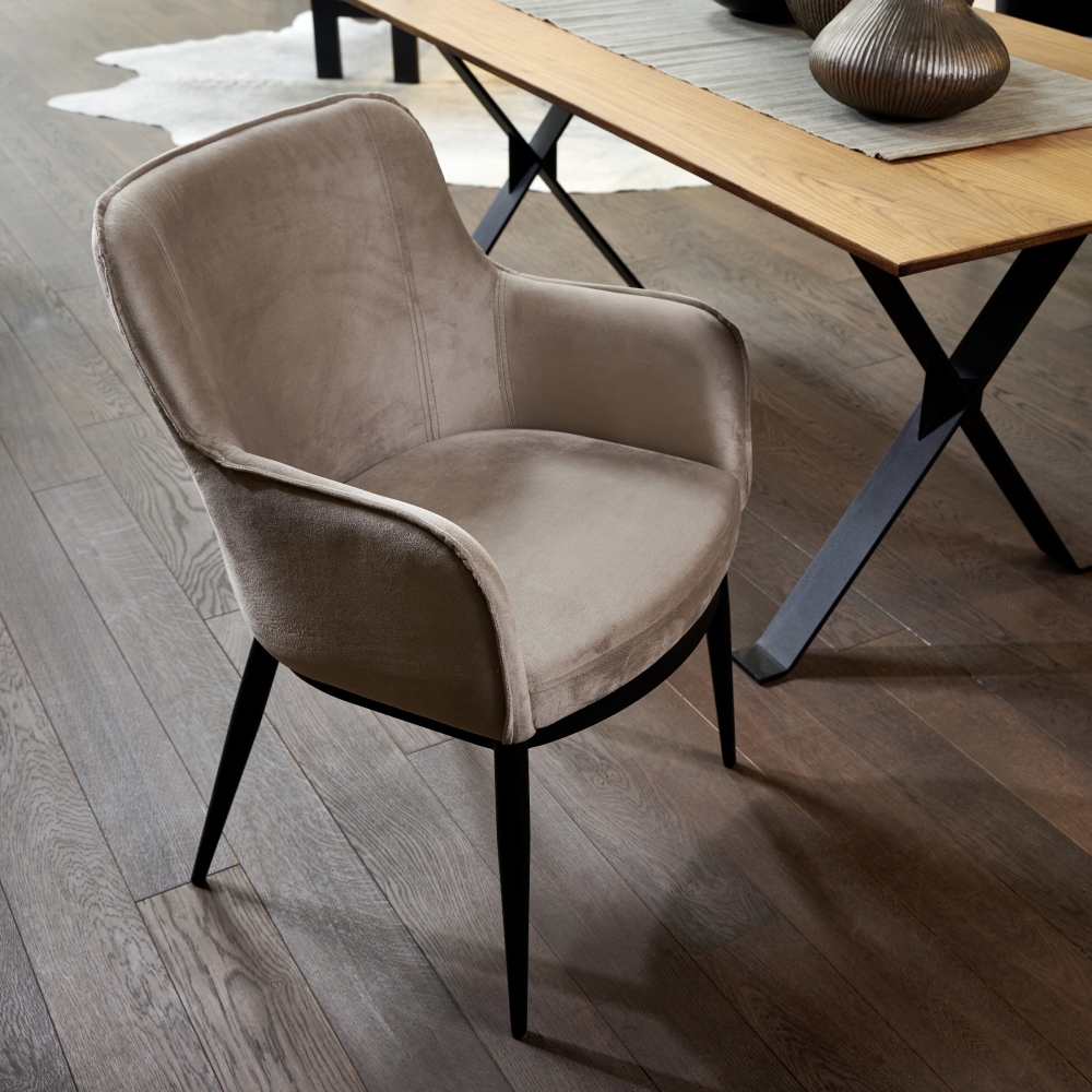 Felix ist ein sehr bequemer Armlehnstuhl. Die Sitzschale ruht auf einem stabilen Untergestell aus Stahl. Die fein texturierte, mattschwarze Pulverbeschichtung macht den Stuhl robust und vielseitig einsetzbar. Der umpolsterte Schaumstoff kann aufgrund der speziellen Form der Sitzschale nur mit ausgesuchten Stoffen bezogen werden. Lambert bietet FELIX in exklusiven Samtstoffen und in 5 trendigen und doch zeitlos eleganten Farben an.