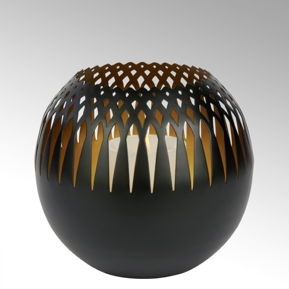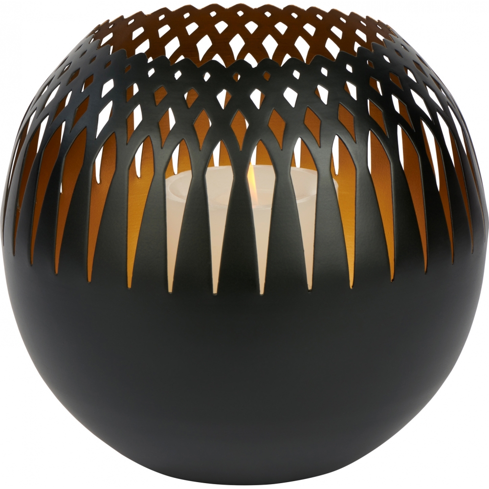Kleine, spannend gestaltete Windlichter können zu einem nicht zu missenden alltäglichen Begleiter Ihrer Tischdekoration werden. Oman ist wie der Name schon sagt inspiriert von der traditionellen Kunst des mittleren Ostens. Das graphische Muster wird im Ätzverfahren aus dem Metall ausgeätzt. Innen wird das Windlicht mit einem Goldton belegt um das Licht besonders weich und warm erscheinen zu lassen. Wachsreste können vorsichtig mit warmen Wasser gelöst werden. Verwenden Sie keine scharfen Gegenstände die die Oberfläche zerkratzen können.
