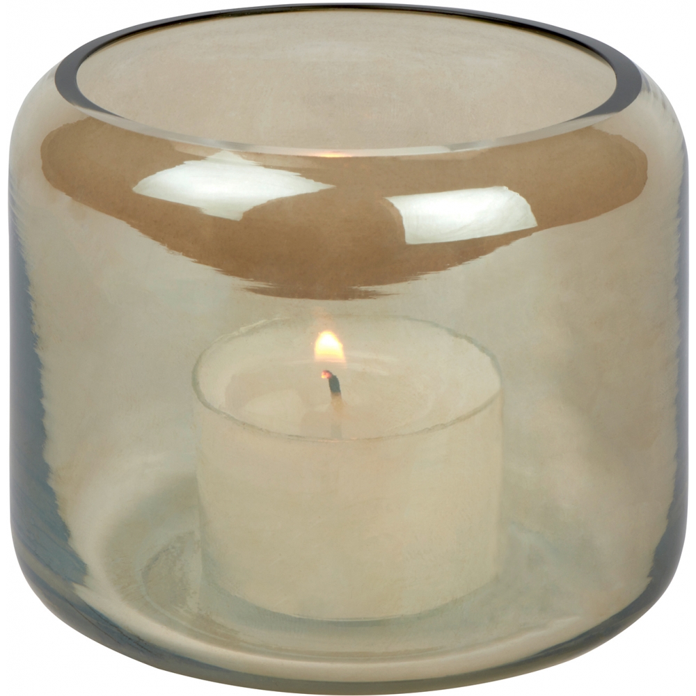 Kleine, dekorative Windlichte schmücken jeden Tisch und Wohn- sowie Badbereich. Die unkomplizierte Form von Oudon wird mundgeblasen. Das Glas wird farbig gesprüht und mit einem Lüstereffekt versehen. Wachsreste können von Hand mit warmem Wasser und Spülmittel entfernt werden.