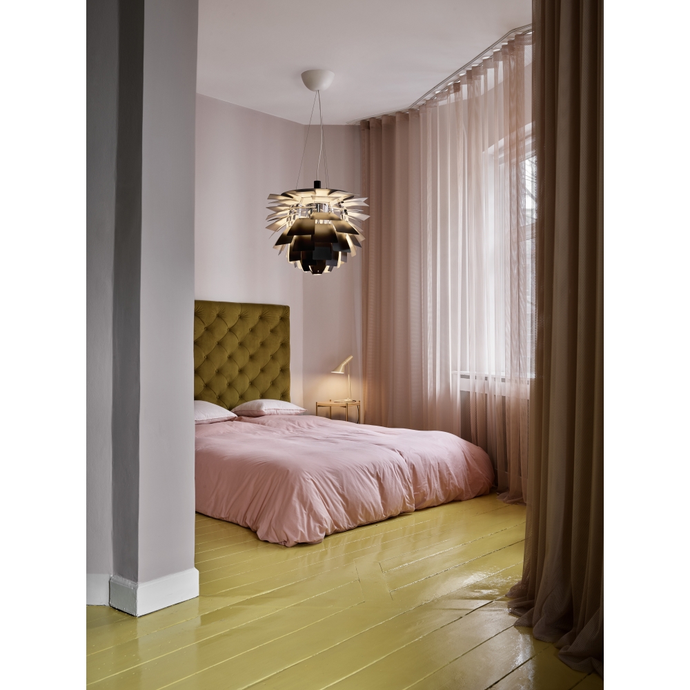 Die AJ Leuchte wurde 1957 für das SAS Royal Hotel in Kopenhagen entworfen und ist ein legendäres Design von Arne Jacobsen. Das Design ist grafisch und stilrein in seinem Ausdruck, was ihm einen zeitlosen Look verleiht, der sich für verschiedene Farbtöne entsprechend den modernen Einrichtungstrends eignet. Die AJ Mini Tischleuchte sorgt für ein nach unten gerichtetes Licht. Die Neigung des Schirms kann an die Bedürfnisse der Anwender angepasst werden. Der Schirm ist auf der Innenseite weiß lackiert, wodurch ein gleichmäßiges, weiches Licht erzeugt wird.
