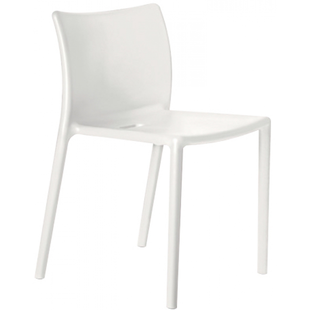 Stapelbarer Stuhl. Aus Polypropylen mit Zusatz von Glasfasern.