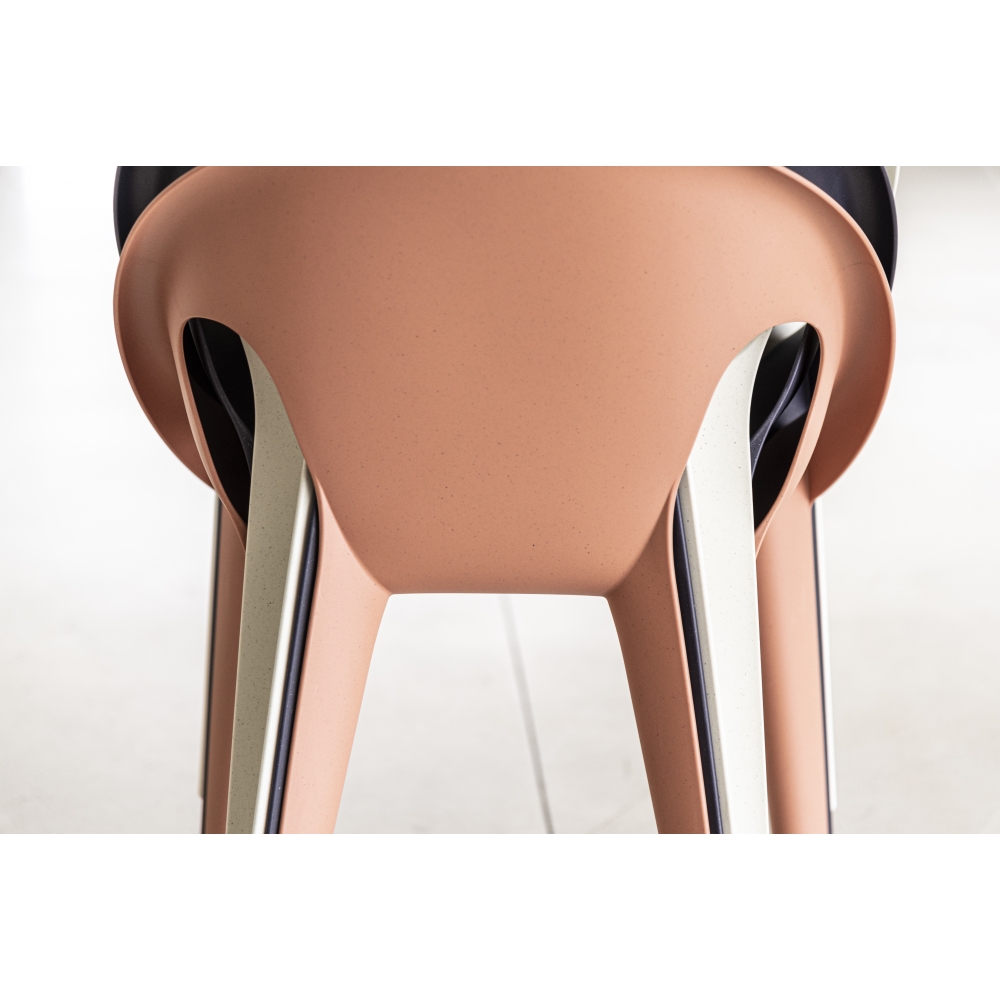 Der Bell Chair ist in drei Farben erhältlich - Sunrise, High Noon und Midnight. Er wird aus recyceltem Polypropylen hergestellt, das aus den Abfällen der Magis-eigenen Möbelproduktion und der lokalen Autoindustrie gewonnen wird. Das patentierte Material schließt fast alle "jungfräulichen oder neuen" Materialien aus und kann nach Gebrauch wieder zu 100% recycelt werden. Auf diese Weise bildet der Bell Chair einen nahezu geschlossenen Materialkreislauf. Die Verantwortung des Designs endet nicht mit dem Produkt selbst. Magis entwickelte ein Logistikkonzept für den Bell Chair, um zusätzliche Ressourcen einzusparen. Dabei handelt es sich um eine speziell entworfene, wiederverwendbare Lieferpalette, auf der bis zu 24 Stühle gestapelt werden können. Dadurch wird weniger Verpackungsmaterial verbraucht, und der vertikale Stapel reduziert den Platzbedarf beim Transport. Gleichzeitig dient die Palette auch als Verkaufsdisplay für Einzelhandelspartner und besteht aus demselben recycelten Kunststoff wie der Stuhl. Der Bell Chair wurde unter dem Gesichtspunkt der Vielseitigkeit hergestellt und kann in Innenräumen, im Freien, für gewerbliche Zwecke, bei Veranstaltungen und in vielen anderen Bereichen eingesetzt werden. Er soll auf kreative, unkonventionelle und innovative Weise verwendet werden.