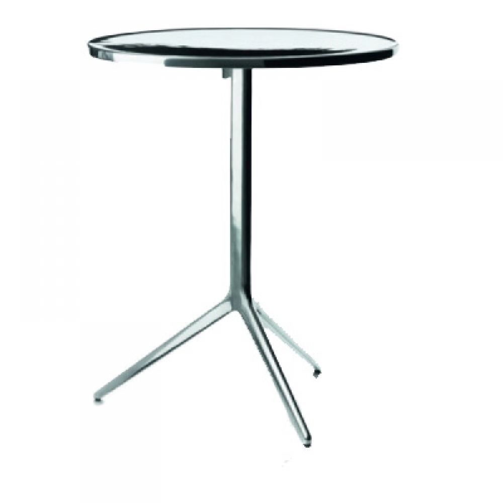 Klappbarer Tisch. Gestell aus druckgegossenem Aluminium poliert. Platte aus poliertem Aluminium, Dicke 20 mm.