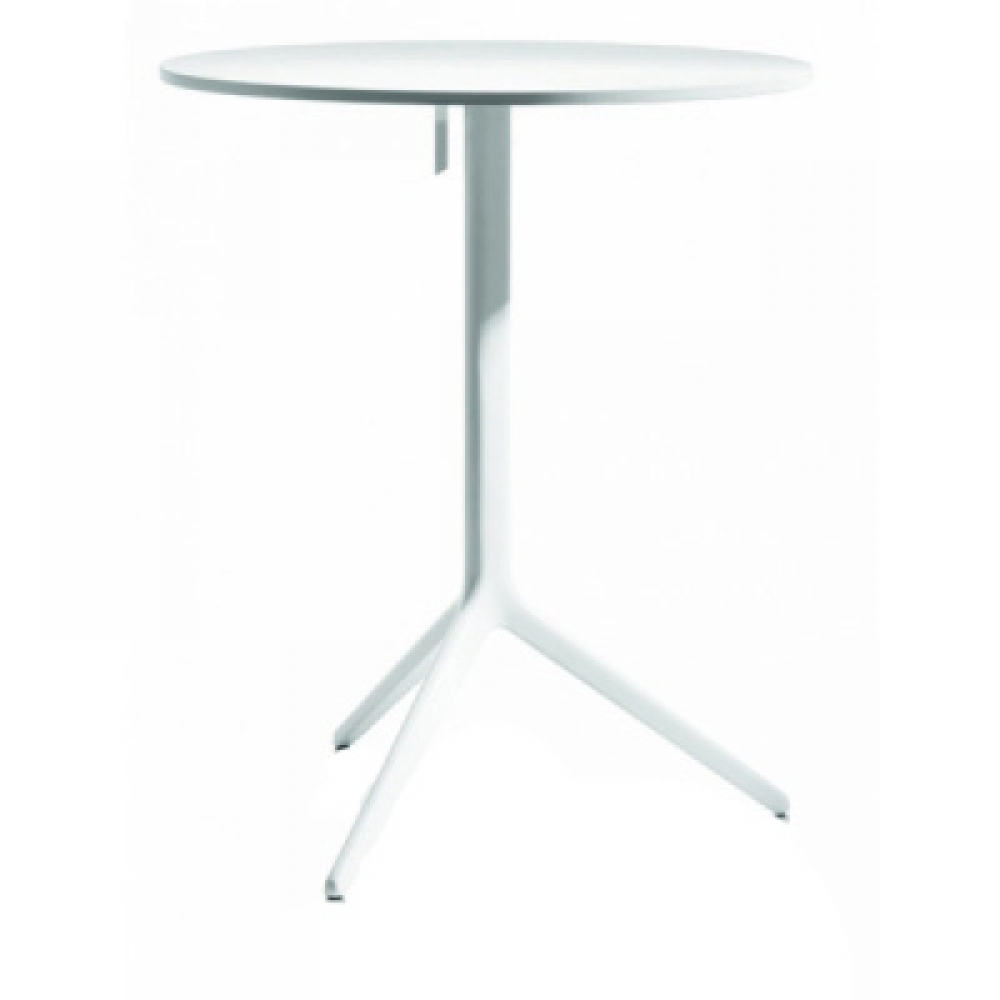 Klappbarer Tisch. Gestell aus druckgegossenem Aluminium, lackiert mit Polyesterpulver. Platte aus HPL, Dicke 12 mm.