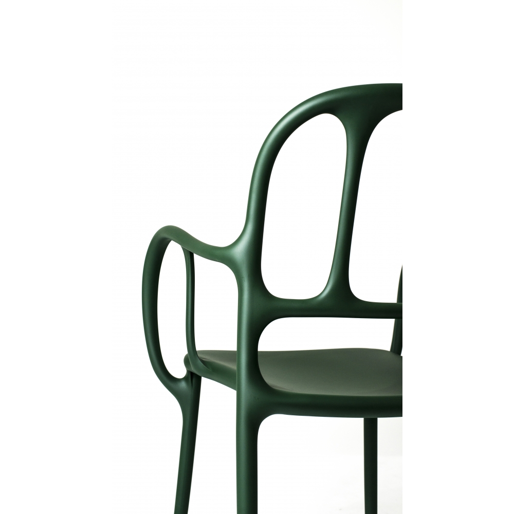 Stuhl mit Armlehnen. Aus Polypropylen mit Glasfaserzusatz. Luftgeformt. Seidenglänzende Oberfläche.