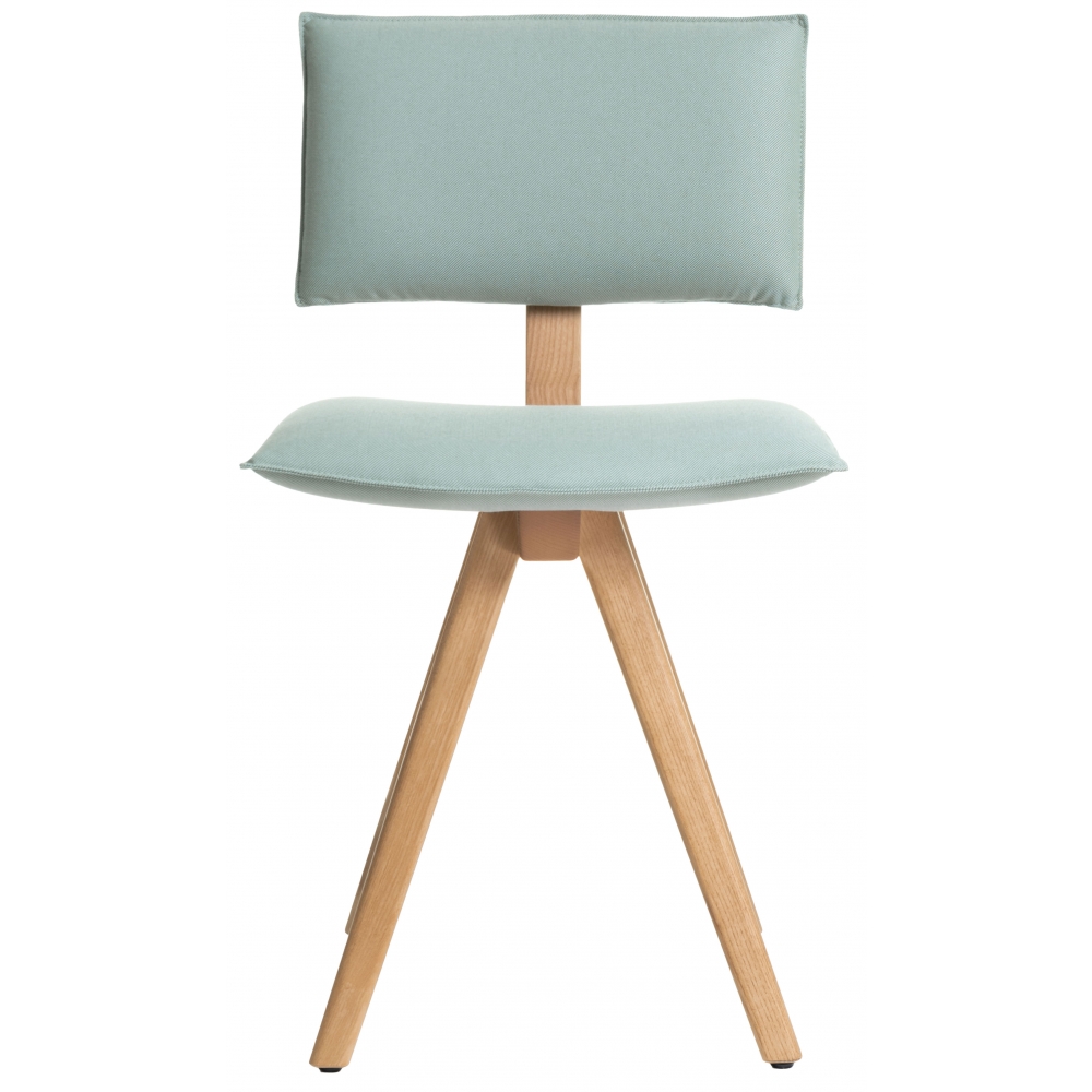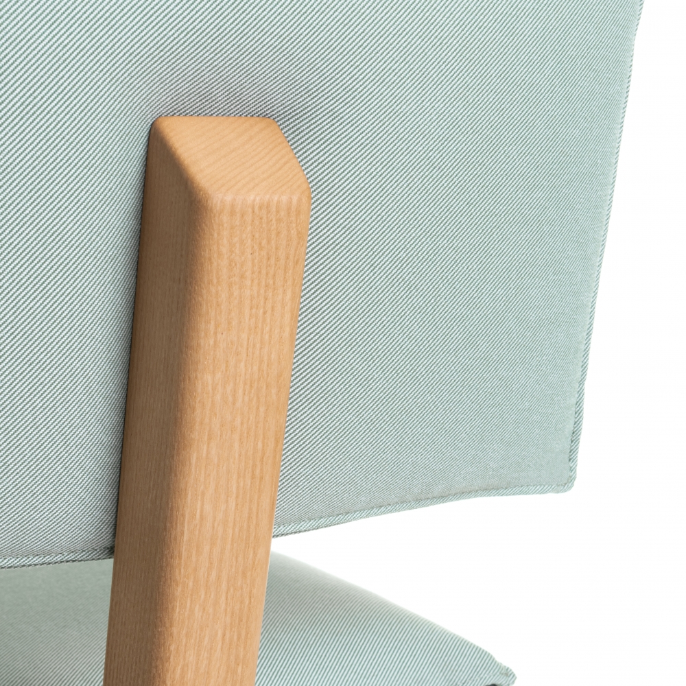 Material Gestell aus massiver Esche, natur oder lackiert. Sitz und Rücken gepolstert und mit Stoff bezogen.
