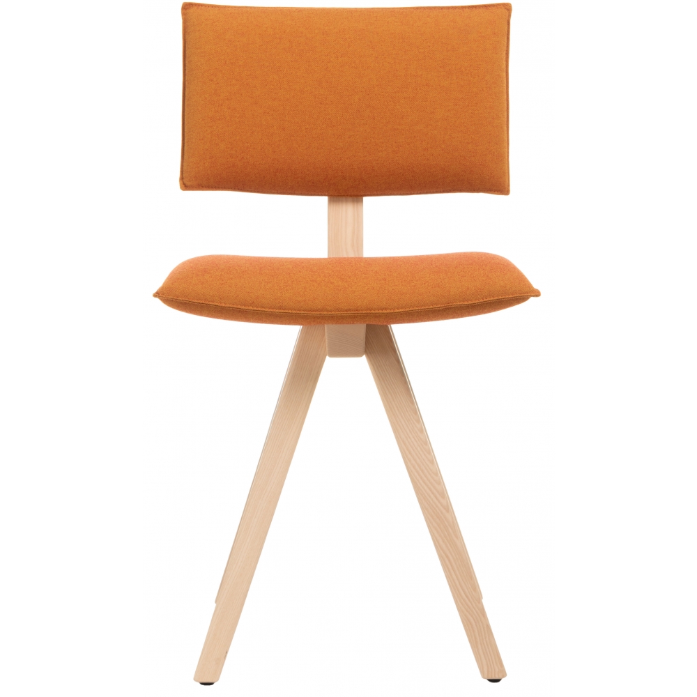 Material Gestell aus massiver Esche, natur oder lackiert. Sitz und Rücken gepolstert und mit Stoff bezogen.