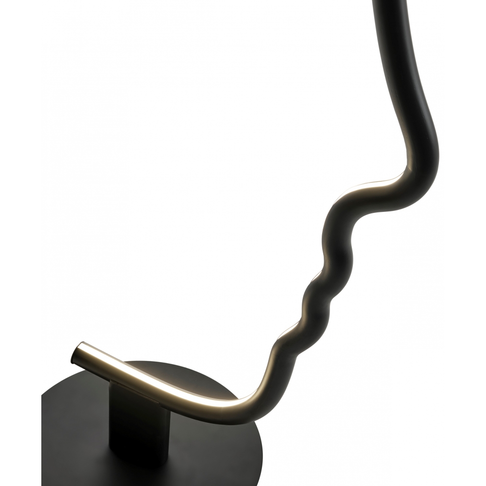 Stehleuchte mit schwarz lackiertem Massivholz Struktur komplett mit Metallsockel. Form deutlich erkennbar durch die starke grafische Zeichen als Skulptur will eine inländische Mikro-Installation sein, die Aufrechterhaltung der funktionalen Eigenschaften der Lampe.