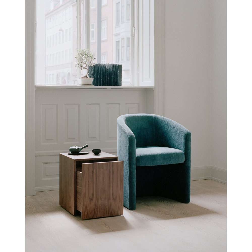 x  New Works - Mass Beistelltisch Walnuss | mit Schublade wurde in Ihren Warenkorb gelegt.