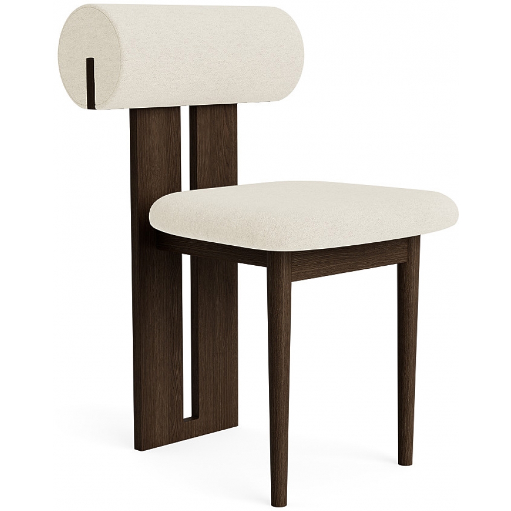 Inspiriert von den Formen der 70er Jahre, aber für einen modernen Lebensstil entworfen, zeichnet sich Hippo durch sein freigeistiges Design aus. Die abgerundete Rückenlehne des Stuhls lädt zu einer freieren Sitzposition ein, in der Sie Ihren Rücken oder Arm bequem ablegen können. Der Hippo Chair | Full Upholstery ruht auf zwei stabilen Holzbeinen, die Sitz und Rücken nahtlos miteinander verbinden. Das markante Holzprofil wirkt wie ein fast architektonisches Element, das in starkem Kontrast zu der abgerundeten, weichen Rückenlehne und Sitzfläche steht.