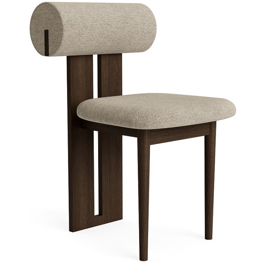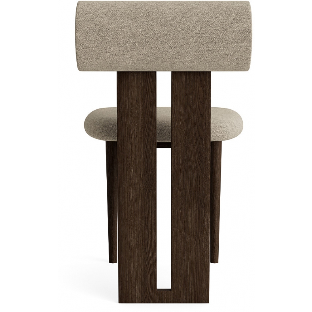 Inspiriert von den Formen der 70er Jahre, aber für einen modernen Lebensstil entworfen, zeichnet sich Hippo durch sein freigeistiges Design aus. Die abgerundete Rückenlehne des Stuhls lädt zu einer freieren Sitzposition ein, in der Sie Ihren Rücken oder Arm bequem ablegen können. Der Hippo Chair | Full Upholstery ruht auf zwei stabilen Holzbeinen, die Sitz und Rücken nahtlos miteinander verbinden. Das markante Holzprofil wirkt wie ein fast architektonisches Element, das in starkem Kontrast zu der abgerundeten, weichen Rückenlehne und Sitzfläche steht.