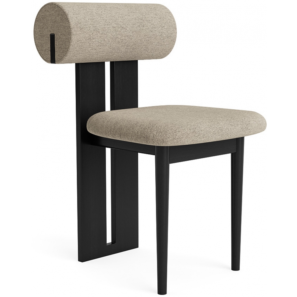 Inspiriert von den Formen der 70er Jahre, aber für einen modernen Lebensstil entworfen, zeichnet sich Hippo durch sein freigeistiges Design aus. Die abgerundete Rückenlehne des Stuhls lädt zu einer freieren Sitzposition ein, in der Sie Ihren Rücken oder Arm bequem ablegen können. Der Hippo Chair | Full Upholstery ruht auf zwei stabilen Holzbeinen, die Sitz und Rücken nahtlos miteinander verbinden. Das markante Holzprofil wirkt wie ein fast architektonisches Element, das in starkem Kontrast zu der abgerundeten, weichen Rückenlehne und Sitzfläche steht.