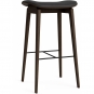 Der NY11 Barhocker besteht aus einem massiven Eichengestell mit einer Fußstütze aus Stahl für zusätzlichen Komfort.