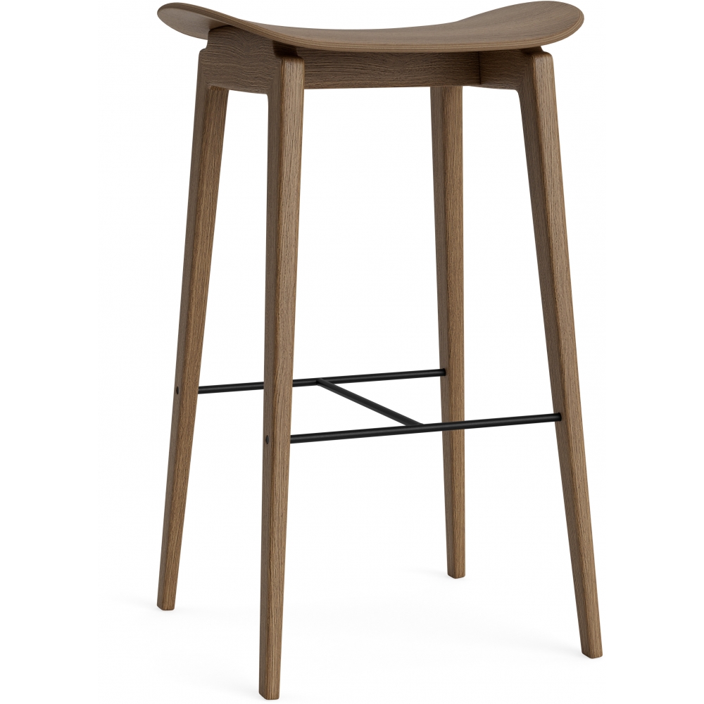 Der NY11 Counterhocker besteht aus einem massiven Eichenholzrahmen mit einer Fußstütze aus Stahl für zusätzlichen Komfort.