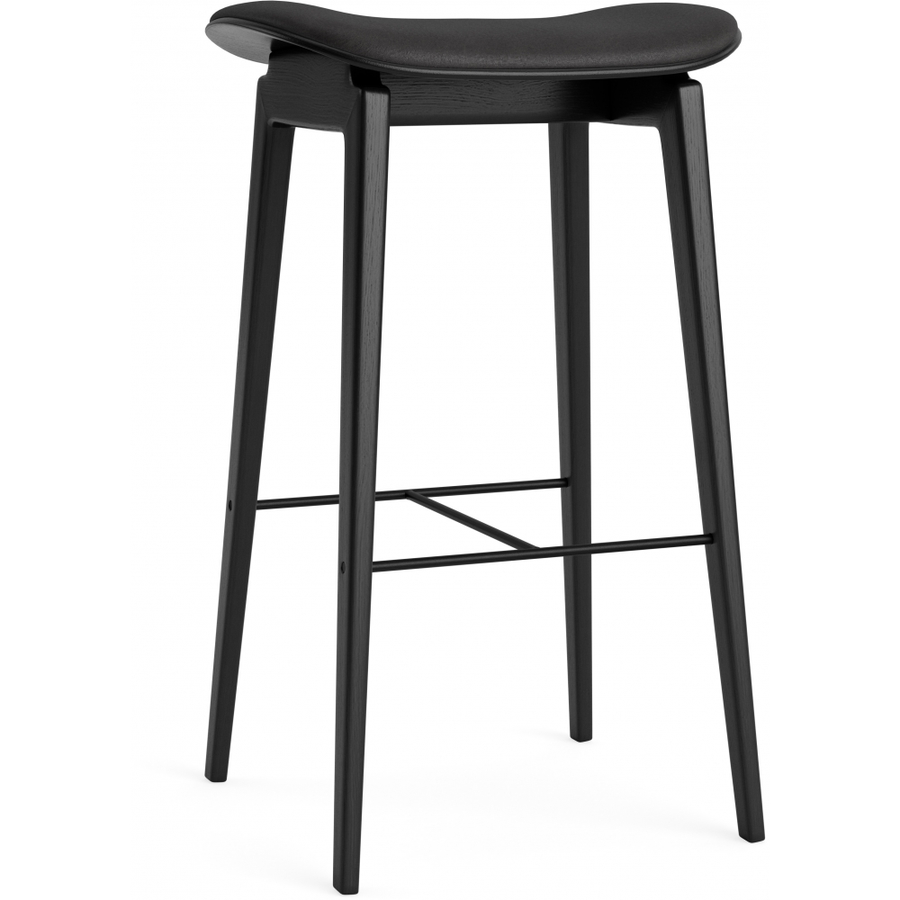 Der NY11 Counterhocker besteht aus einem massiven Eichenholzrahmen mit einer Fußstütze aus Stahl für zusätzlichen Komfort.