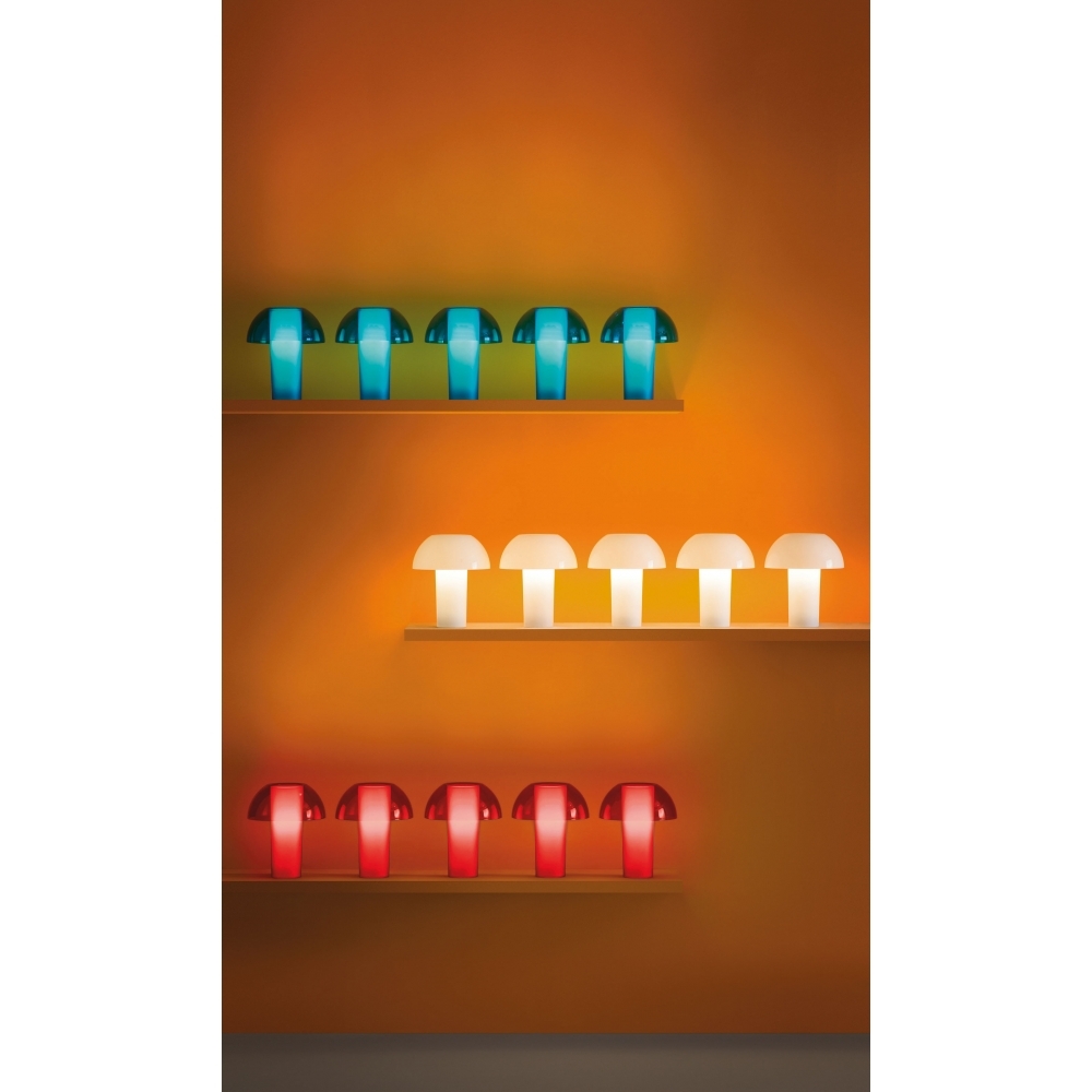 Colette ist eine Tischlampe, welche durch ihre Veränderbarkeit von Form & Farbe beeindruckt. Ein lichtdurchlässiger Zylinder versucht, das Licht ‘einzusperren’, welches sich nur im Zusammenspiel mit der Halbkugel vollständig entfaltet, die durch ihre Transparenz der gesamten Lampe Leichtigkeit verleiht. Colette besteht komplett aus Polycarbonat und ist in 6 verschiedenen Farbvarianten zu haben: opalweiß, transparent, rauchigem fumé, gelb, blau und rot.