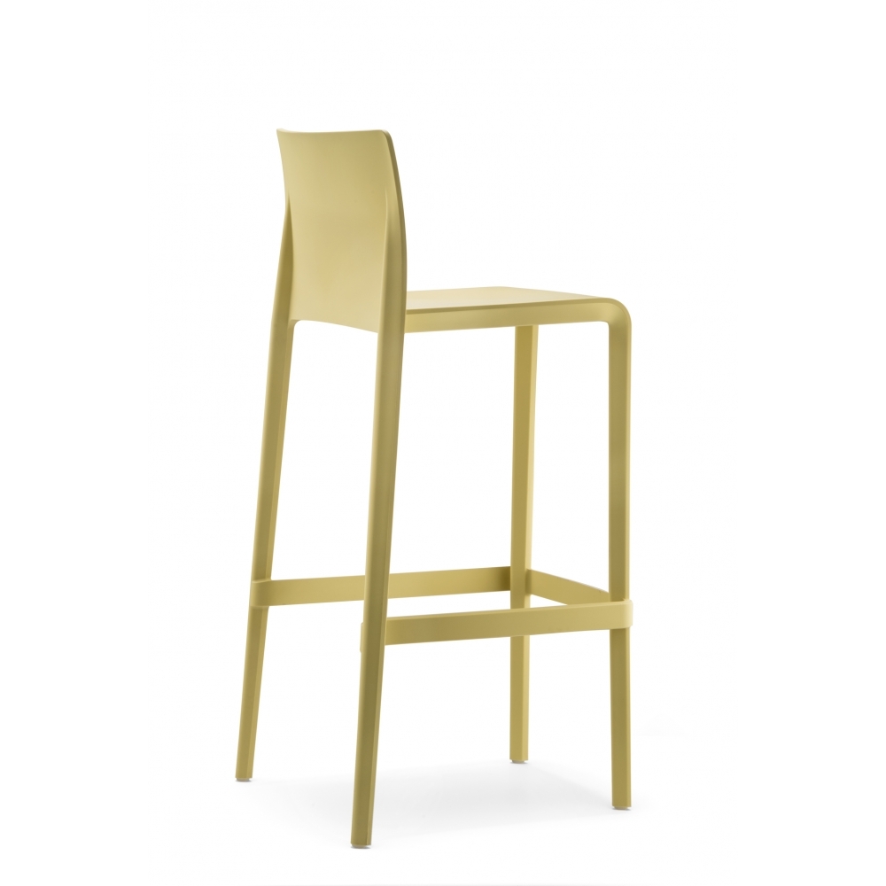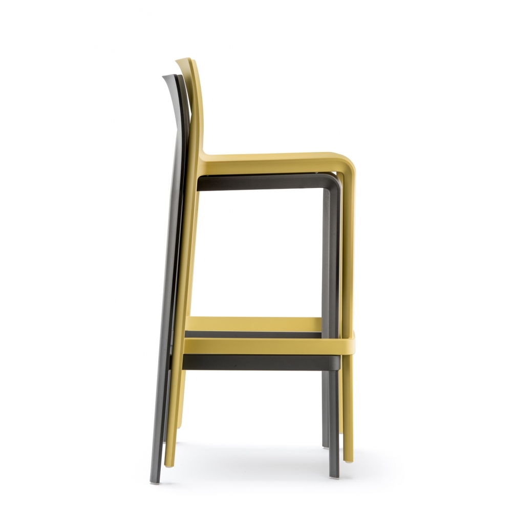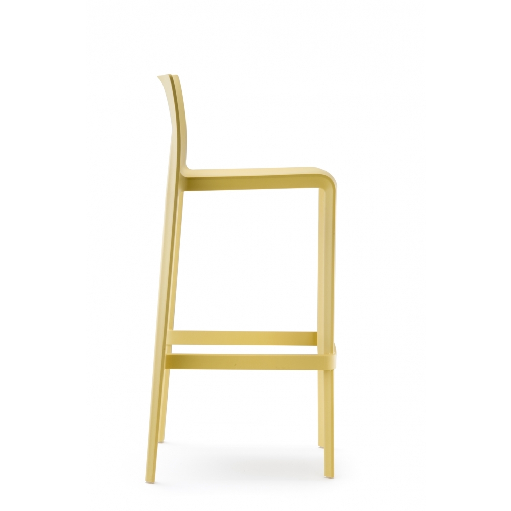 Der Barhocker ist in glasfasern-verstärktem Polypropylen gefertigt und ist in der gleichen Farbpalette des Stuhls erhältlich.