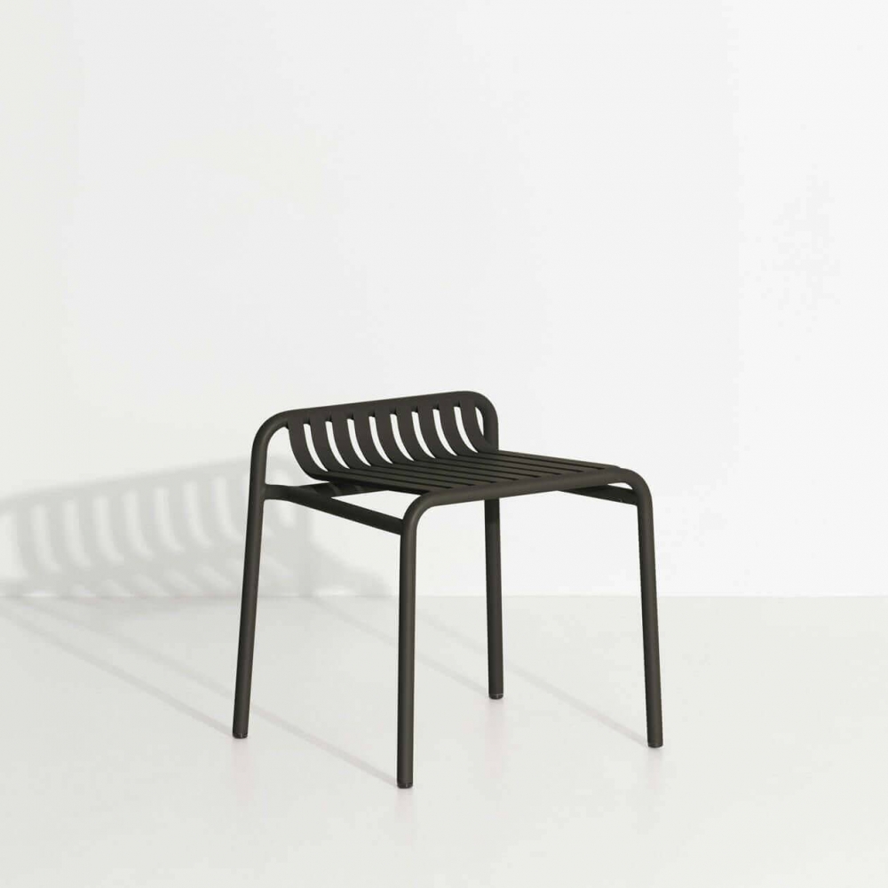 Die WEEK-END-Kollektion ist ein komplettes Sortiment an Außenmöbeln. Alle Sitzmöbel sind stapelbar und wurden mit Blick auf die Praktikabilität entworfen. Die ovale und kreisförmige Form, die von den Rückenlehnen gezeichnet wird, macht sie zu einem grafischen Statement. Die Wirkung der horizontalen und vertikalen Lamellen, die an Streifen erinnern, hebt die vollen und leeren Räume hervor und unterstreicht die Identität der Kollektion.