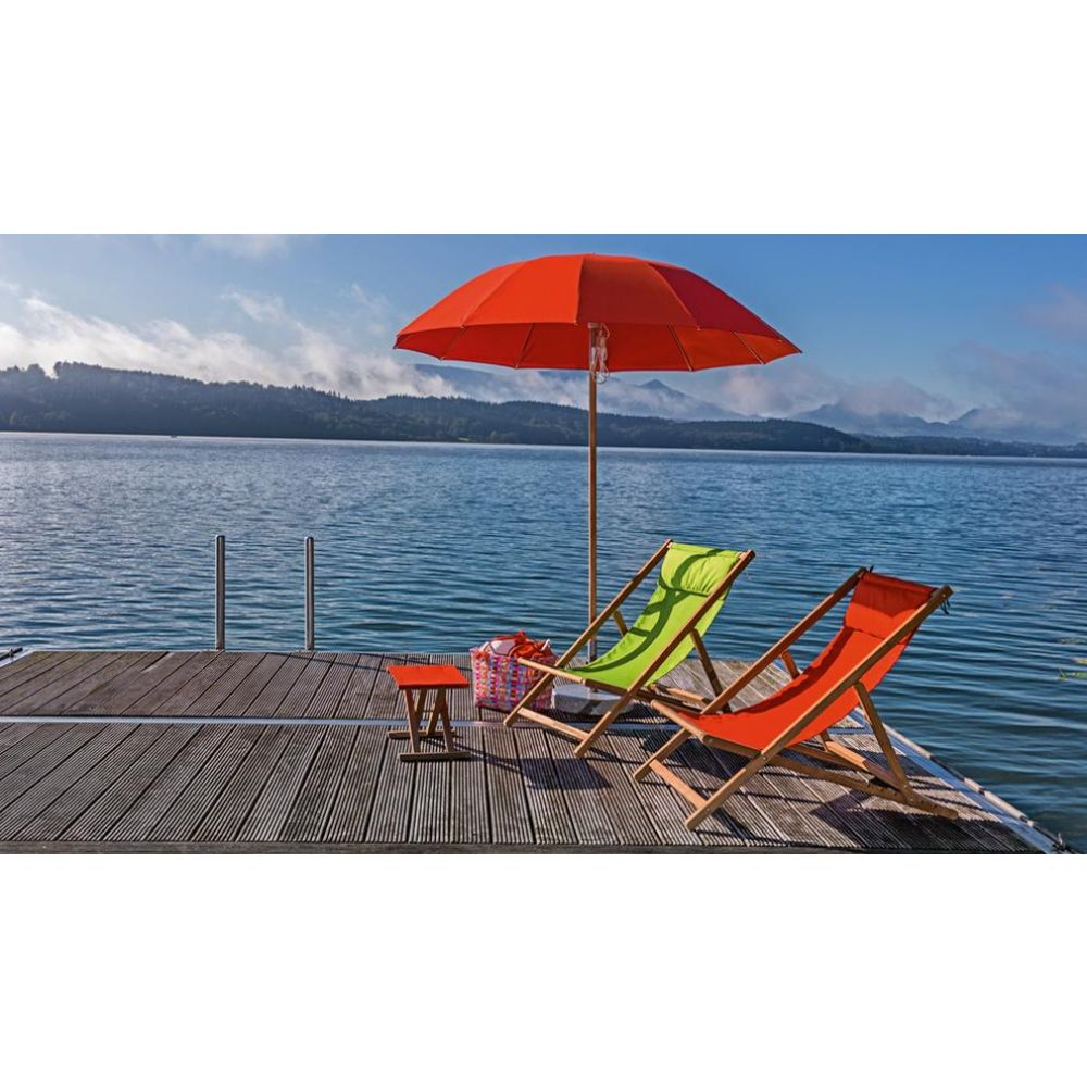 Verstellbar (6 Positionen) und klappbar; Bespannung wasser-, öl- und schmutzabweisend imprägniert; wetterfest, verrottungsbeständig und pflegeleicht